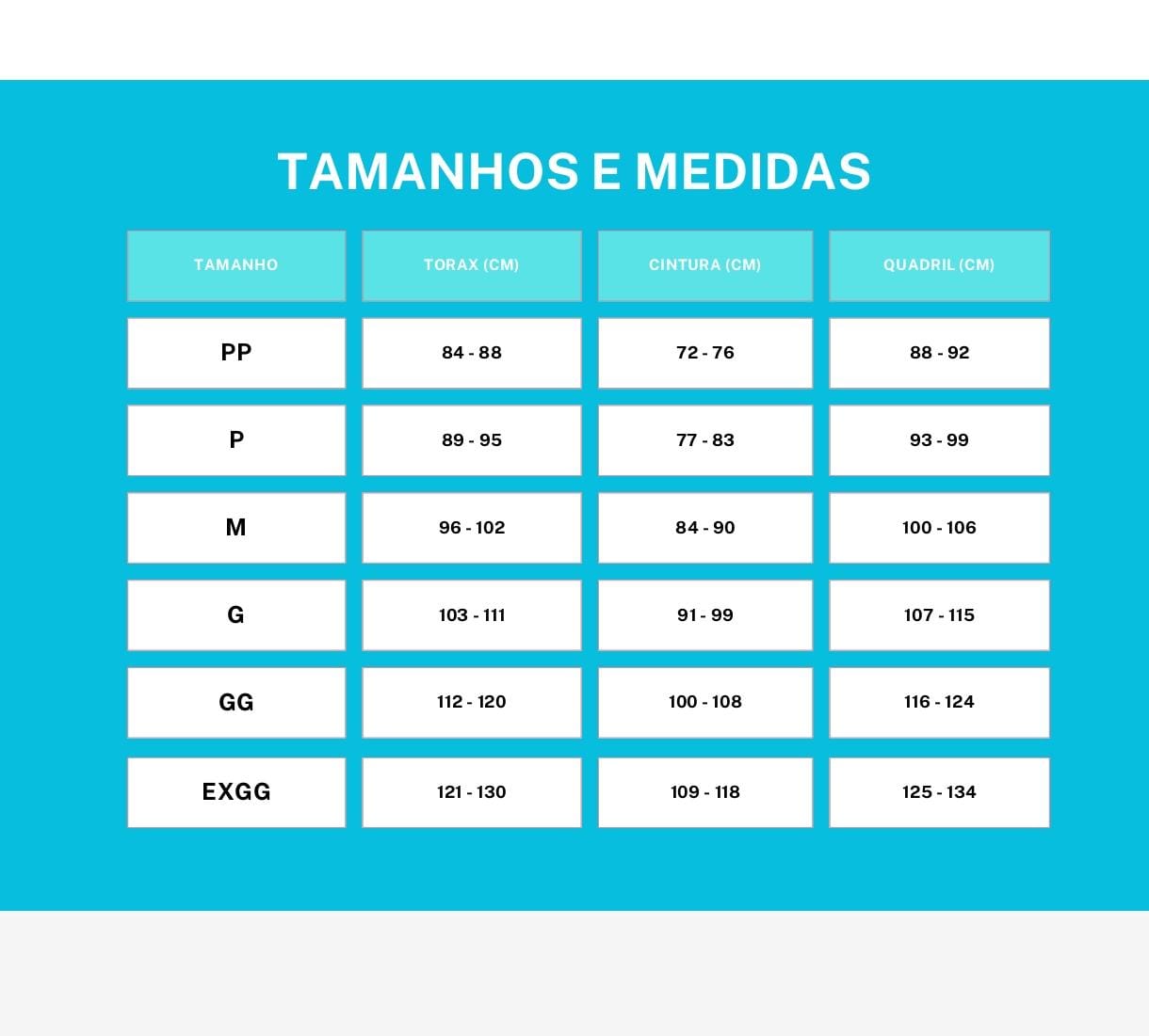 Nosso modelo veste M , na dúvida quanto ao tamanho, confira nossas medidas abaixo.